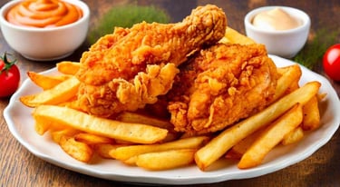 150 gr. De Pechuga + Papas Fritas + Ensalada + Cremas.
